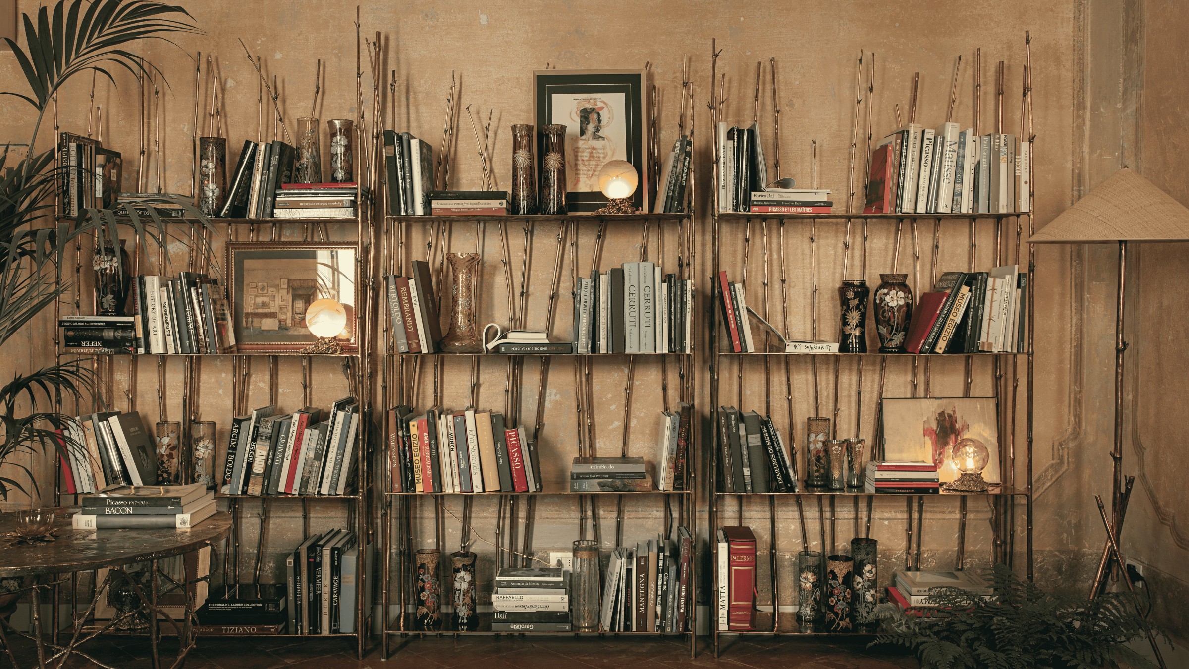 Bambù Bookcase and Bambù Cabinet in Bronze