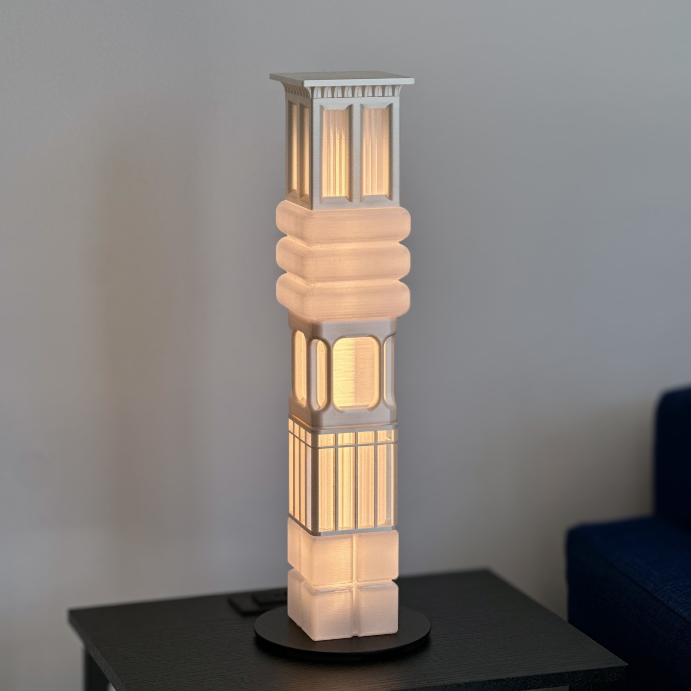 “New York, Composed” is a modular table lamp made of interchangeable cubic covers inspired by the diverse architectural facades of New York City. Each cube abstracts elements such as brickwork, glass curtain walls, and industrial grids into a unified lighting system. Stacked together, the modules form a layered composition that reflects the density and diversity of the city. Light diffuses uniquely through each surface, creating varied glow, shadow, and texture, evoking the experience of moving through New York at night. The project combines digital fabrication with architectural referencing, merging additive manufacturing with the craft of facade detailing. Users can rearrange the cubes, becoming co-creators of their own “city,” reinforcing the idea of New York as a constantly evolving composition.