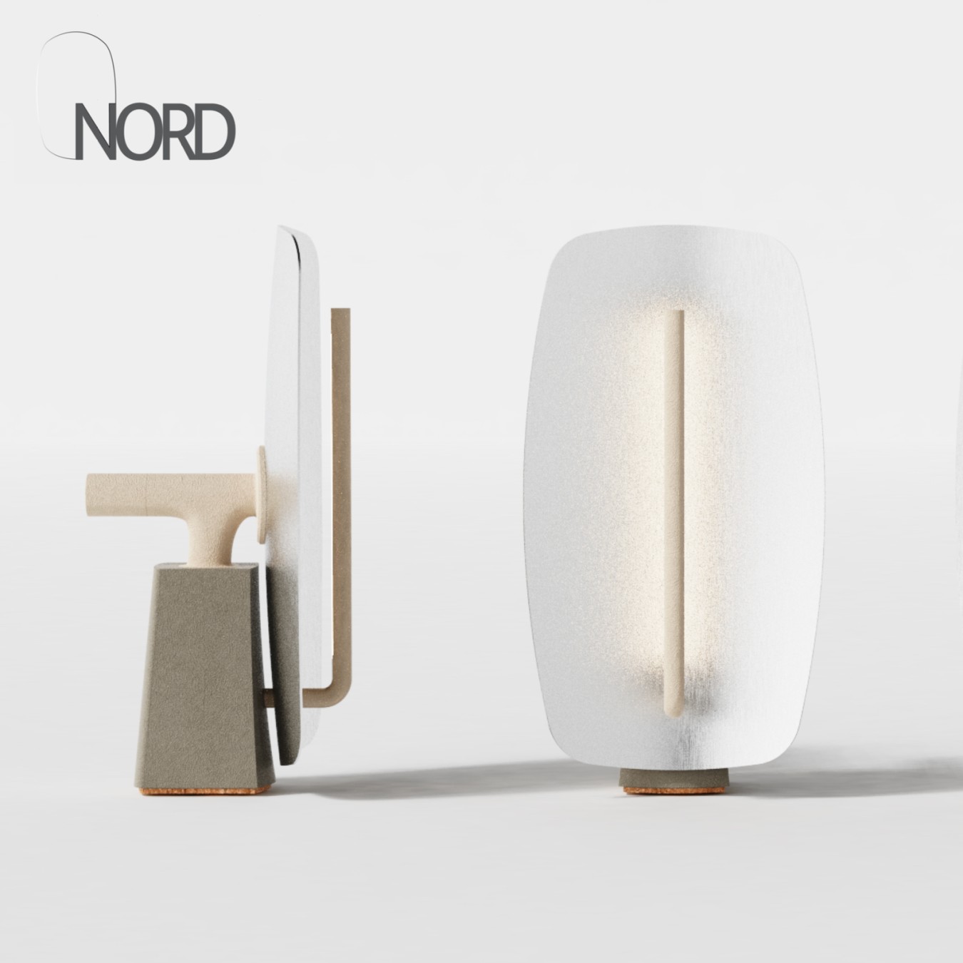 Nord is a table lamp designed to recreate the feeling of a candle using modern fabrication methods. The light source is hidden within the stem and reflected off a custom compound aluminum parabolic reflector. Instead of a simple on/off state, the LED is driven by a microcontroller running a mathematical model of a flickering flame, creating a gentle and realistic flicker that never repeats. The materials were chosen to foster a pleasant tactility: the base is 3D printed in a weighted wood-fiber HTPLA, and the dimmer dial is made of sandstone, giving a cool, natural surface to touch when adjusting the light.